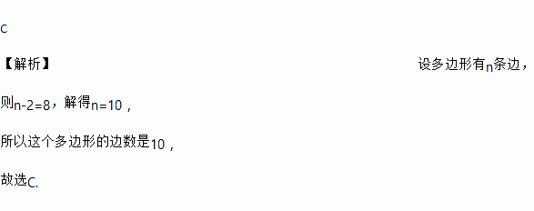 过多边形的一个顶点的所有对角线把多边形分成8个三角形,这个多边形的边数是( )