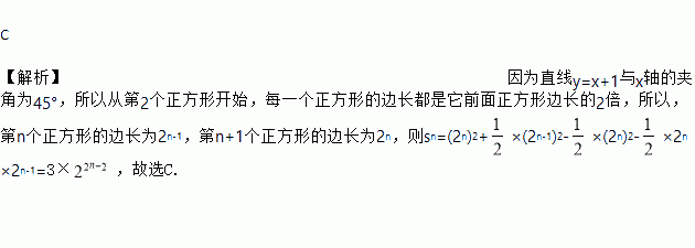 如图,在平面直角坐标系中,边长不等的正方形依次排列,每个正方形都有一个顶点落在函数 y=x+1 的图像上,阴影图形 “