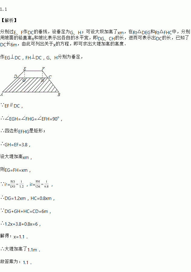 ,为了增加抗洪能力,现将大堤加高,加高部分的横断面为梯形![]()