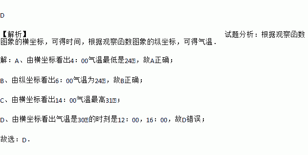 C. 14:00气温最高 D. 气温是30 ℃的时刻为16:00