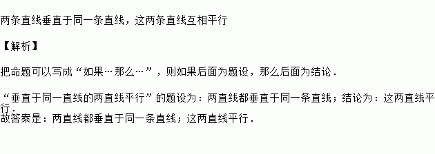 命题“垂直于同一直线的两直线平行”的题设是____________,结论是__________.