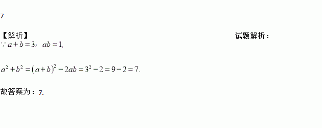 已知a+b=3,ab=1,则a2+b2=_______