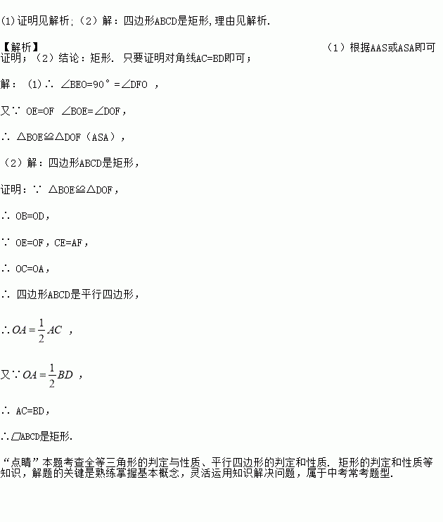 (1)求证:△BOE≌△DOF;