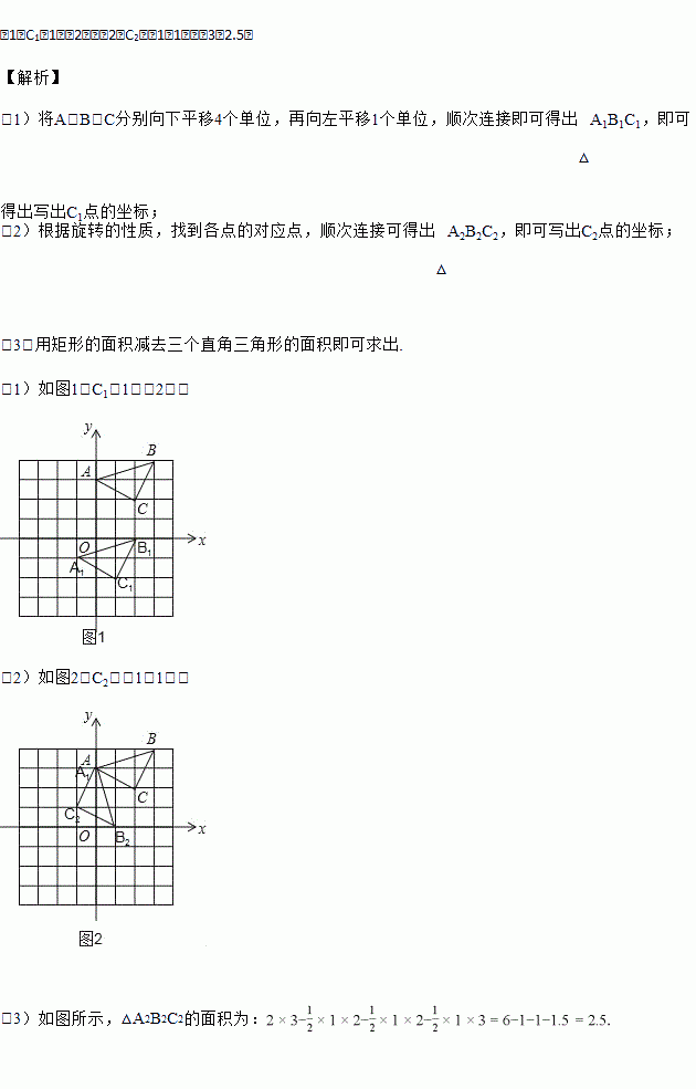 (2)作出△ABC绕点A顺时针方向旋转90°后得到的△A2B2C2,并直接写出C2点的坐标;