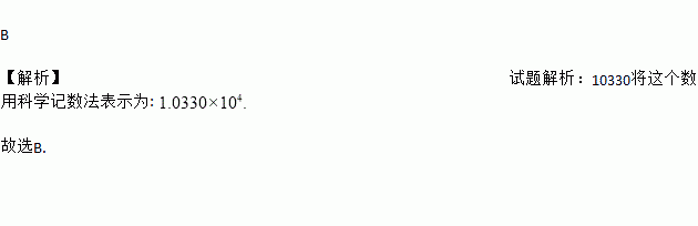 2017年西藏自治区农村居民人均可支配收入达到10330元,将这个数用科学记数法表示为( )