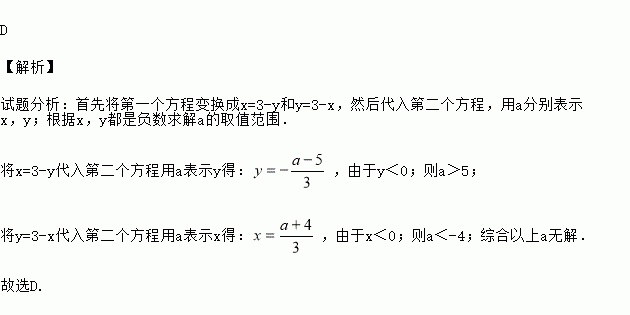 如果关于x、y的方程组的解是负数,则a的取值范围是( )
