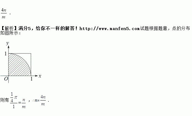 £¨2017ÄÚÃɹźôºÍºÆÌØÊУ©ÎÒ¹úκ½úʱÆÚÊýѧ¼ÒÁõ»ÕÊ×´´¡°¸îÔ²Êõ¡±¼ÆËãÔ²ÖÜÂÊ£®Ëæ×Åʱ´ú·¢Õ¹£¬ÏÖÔÚÈËÃÇÒÀ¾ÝƵÂʹÀ¼Æ¸ÅÂÊÕâÒ»ÔÀí£¬³£ÓÃËæ»úÄ£ÄâµÄ·½·¨¶ÔÔ²ÖÜÂʦнøÐйÀ¼Æ£¬ÓüÆËã»úËæ»ú²úÉúm¸öÓÐÐòÊý¶Ô£¨x£¬y£©£¨x£¬yÊÇʵÊý£¬ÇÒ0¡Üx¡Ü1£¬0¡Üy¡Ü1£©£¬ËüÃǶÔÓ¦µÄµãÔÚÆ½ÃæÖ±½Ç×ø±êϵÖÐÈ«²¿ÔÚijһ¸öÕý·½Ðεı߽缰ÆäÄÚ²¿£®Èç¹ûͳ¼Æ³öÕâЩµãÖе½ÔµãµÄ¾àÀëСÓÚ»òµÈÓÚ1µÄµãÓÐn¸ö£¬Ôò¾Ý´Ë¿É¹À¼Æ¦ÐµÄֵΪ______£®£¨Óú¬m£¬nµÄʽ×Ó±íʾ£©