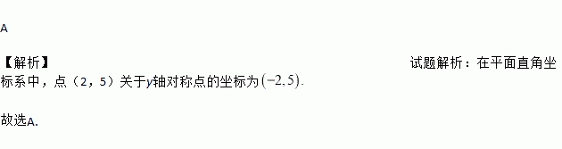 在平面直角坐标系中,点(2,5)关于y轴对称点的坐标为( ).