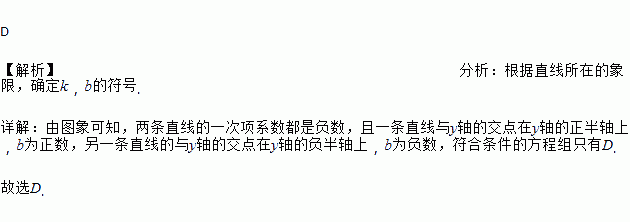 小明用作图象的方法解二元一次方程组时,他作出了相应的两个一次函数的图象,则他解的这个方程组是( )