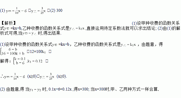 (1) 求甲、乙两种收费方式的函数关系式;