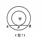 如图7,在以O为圆心的两个同心圆中,大圆的弦AB是小圆的切线,P为切点,如果,小圆半径为3cm,那么大圆半径为 cm.