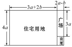 如图,一长方形地块用来建造住宅、广场、商厦,求这块地的面积.