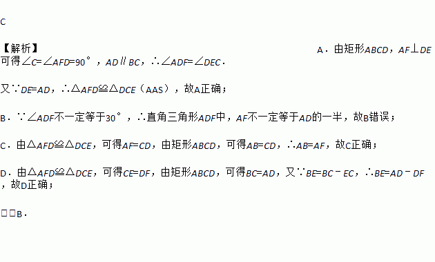 如图,在矩形ABCD中(AD>AB),点E是BC上一点,且DE=DA,AF⊥DE,垂足为点F,在下列结论中,不一定正确的是( )
