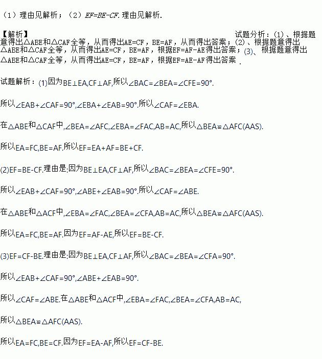 (1)如图1,当EF与斜边BC不相交时,试说明EF=BE+CF;