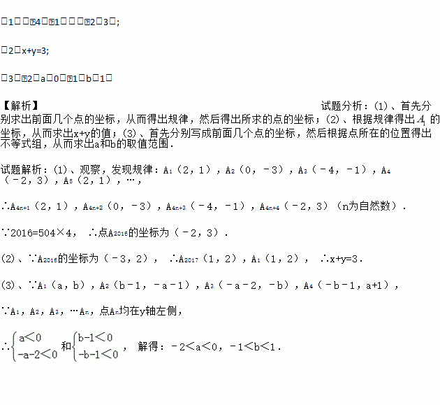 (3)设点A1的坐标为(a,b ),若A1,A2,A3,…An,点An均在y轴左侧,求a、b的取值范围.