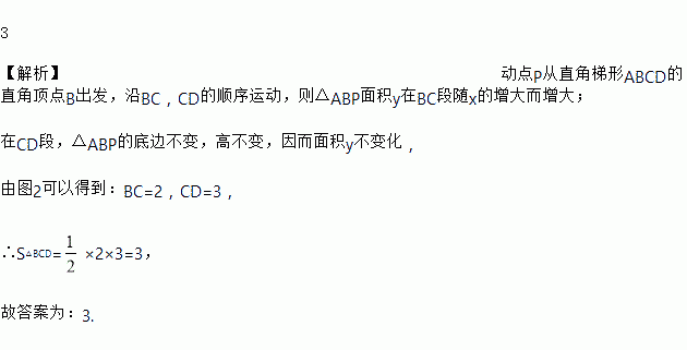 如图①,在直角梯形ABCD中,动点P从点B出发,沿BC、CD运动至点D停止,设点P运动的路程为x,△ABP的面积为y.若y关于x的函数图象如图②所示,则△BCD的面积是__.