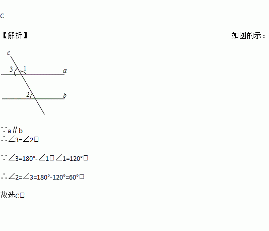 如图,直线∥,∠1=120º,则∠2的度数是( )