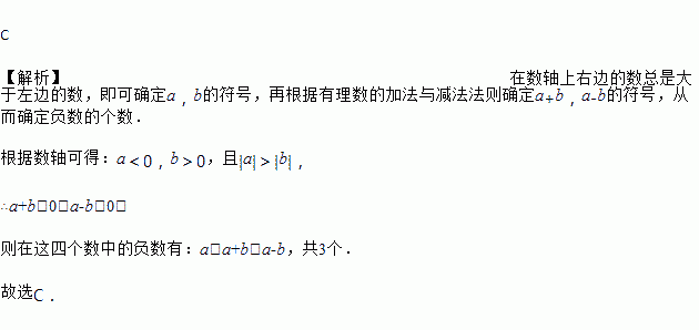 在数轴上表示a,b的点的位置如图所示,则a,b,a+b,a-b中,负数有( )