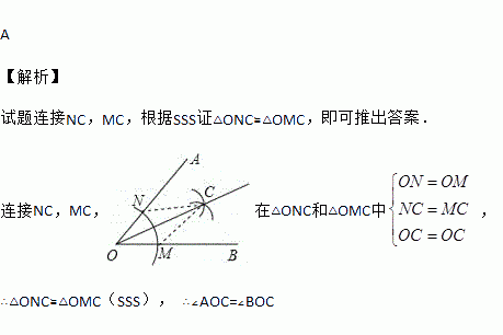 用直尺和圆规作一个角的平分线如图所示,说明∠AOC=∠BOC的依据是( ).