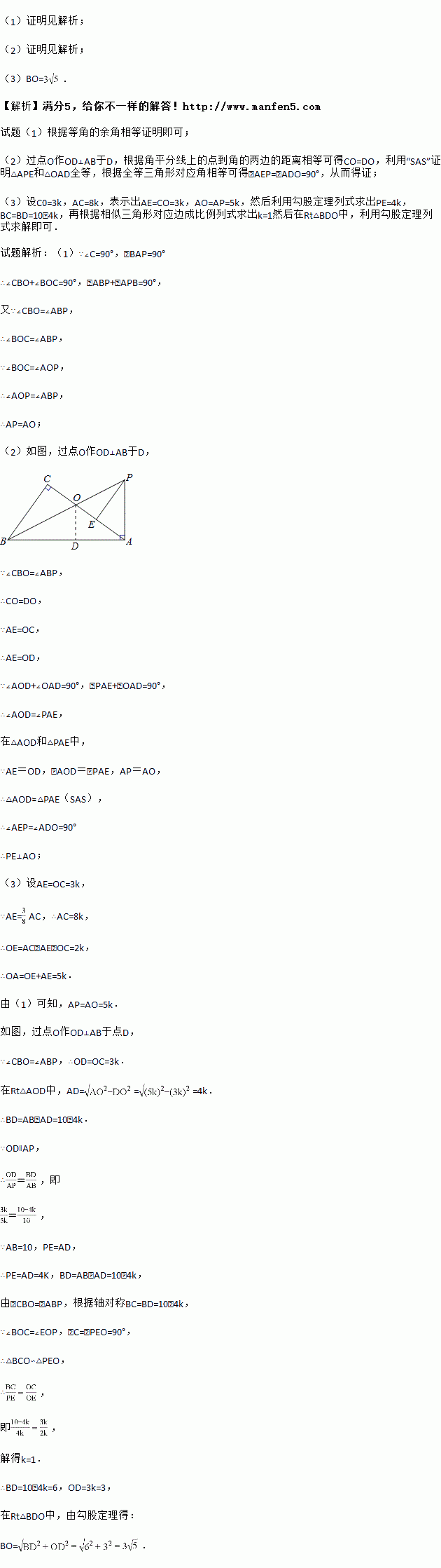 如图,在Rt△ABC中,∠C=90°,Rt△BAP中,∠BAP=90°,已知∠CBO=∠ABP,BP交AC于点O,E为AC上一点,且AE=OC.