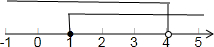 故不等式组的解集为1≤x<4,