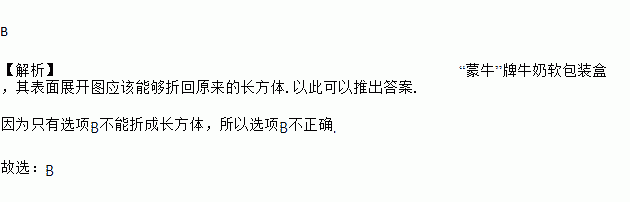 下面是“蒙牛”牌牛奶软包装盒,其表面展开图不正确的是( )