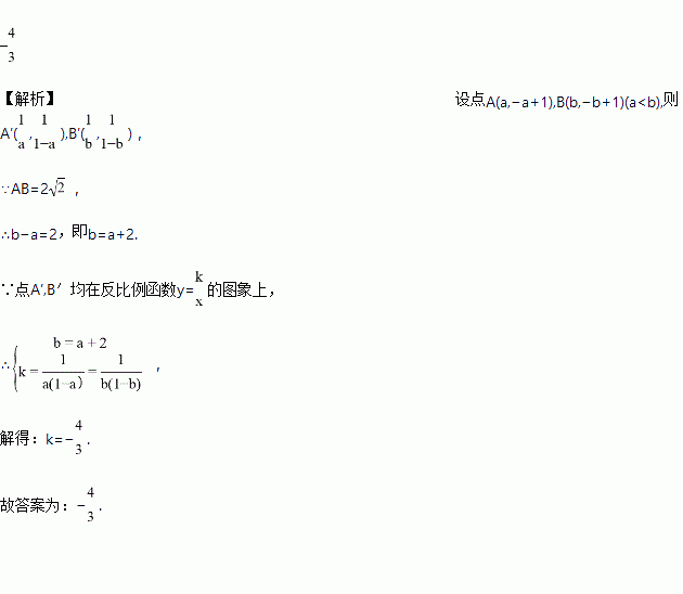 称为点P的“倒影点”.直线y=-x+1上有两点A,B,它们的“倒影点”A′,B′均在反比例函数y=