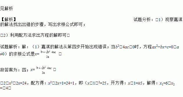 嘉淇的解法从第 步开始出现错误;事实上,当b2﹣4ac>0时,方程ax2+bx+c=0(a≠O)的求根公式是 .