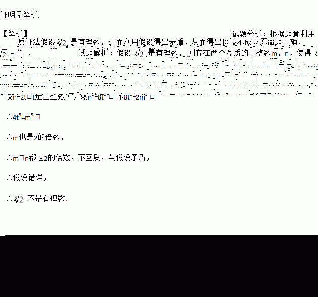 ,两边平方得p2=2q2 . 因为2q2是偶数,所以p2是偶数,而只有偶数的平方才是偶数,所以p也是偶数.因此可设p=2s,代入上式,得4s2=2q2 , 即q2=2s2 , 所以q也是偶数,这样,p和q都是偶数,不互质,这与假设p,q互质矛盾,这个矛盾说明,