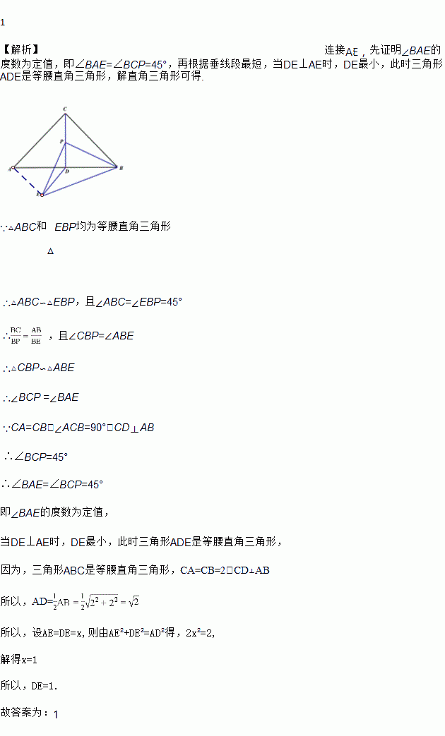 如图,Rt△ABC中,∠ACB=90°,CA=CB=2,CD⊥AB于D,点P是线段CD上的一个动点,以点P为直角顶点向下作等腰直角△PBE,