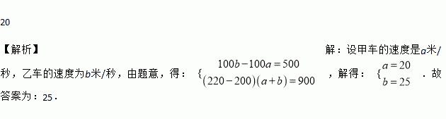 设甲、乙两车在同一直线公路上匀速行驶,开始甲车在乙车的前面,当乙车追上甲车后,两车停下来,把乙车的货物转给甲车,然后甲车继续前行,乙车向原地返回.设x秒后两车间的距离为y米,y关于x的函数关系如图所示,则甲车的速度是__________米/秒.