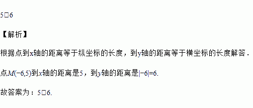 点M(-6,5)到x轴的距离是_____,到y轴的距离是______.