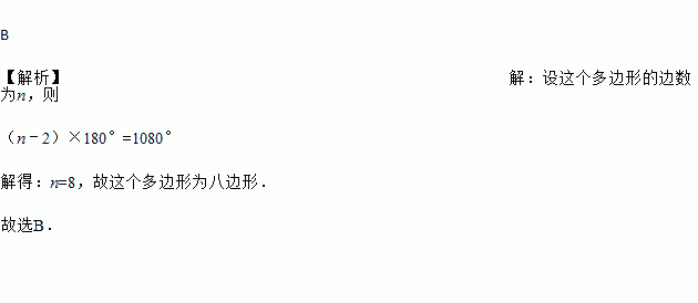 如果一个多边形的内角和等于1080°,那么这个多边形的边数为( )
