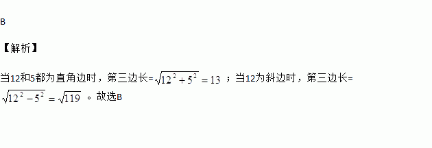若一直角三角形两边长分别为12和5,则第三边长为( )