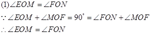 (2)要求∠EON+∠MOF的度数和,结合图形发现角之间的和的关系,显然即是两个直角的和.