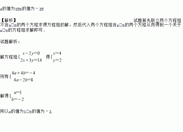已知关于x、y的二元一次方程组与的解相同,求a、b的值.