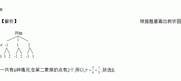有三张正面分别写有数字-1,1,2的卡片,它们背面完全相同,现将这三张卡片背面朝上洗匀后随机抽取一张,以其正面数字作为a的值,然后再从剩余的两张卡片随机抽一张,以其正面的数字作为b的值,则点(a,b)在第二象限的概率为( )