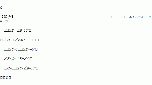 如图,AD是∠EAC的平分线,AD∥BC,∠B=30°,则∠C的度数为( )