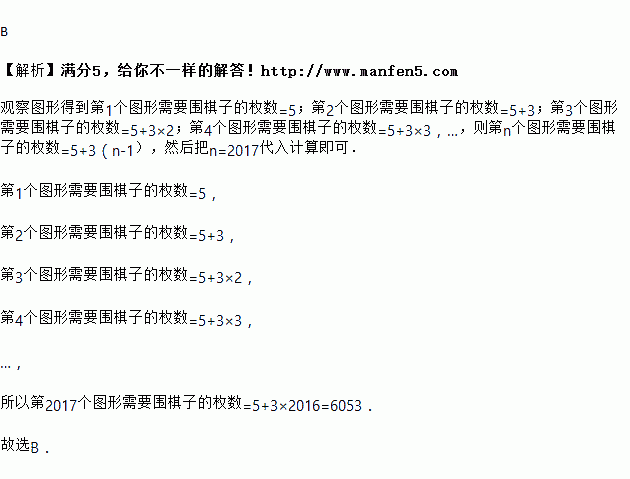 用围棋子按下面的规律摆放图形,则摆放第2017个图形需要围棋子的枚数是( )