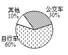 经调查,某班同学上学所用的交通工具中, 自行车占60 %, 公交车占30 %, 其他占10 %, 请你画出扇形图描述以上统计数据.