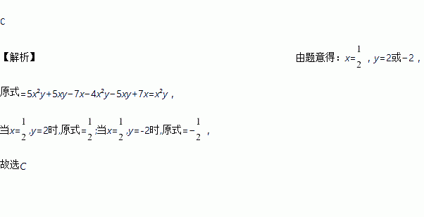 已知整式6x一l的值是2,y2的值是4,则(5x2 y+5xy一7x)一(4x2 y+5xy一7x)=( )