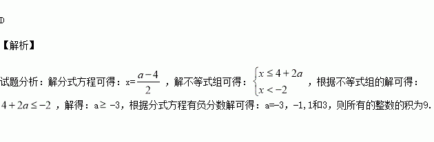 如果关于x的分式方程有负分数解,且关于x的不等式组的解集为x<-2,那么符合条件的所有整数a的积是 ( )