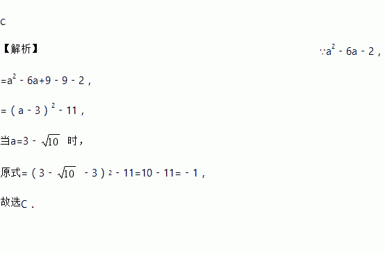 若a=3﹣,则代数式a2﹣6a﹣2的值是( )