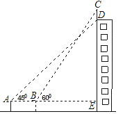 如图,某幢大楼顶部有一块广告牌CD,甲、乙两人分别在A、B两处,甲测得点D的仰角为45°,乙测得点C的仰角为60°,已知两人使用的测角仪的高度AF、BG相等,且A、B、E三点在一条直线上,AB=8m,BE=15m.求广告牌CD的高(精确到1m).