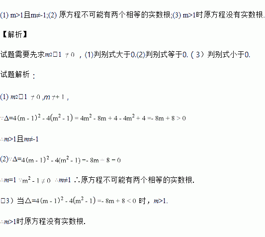 当m为何值时,一元二次方程(m2-1)x2+2(m-1)x+1=0?