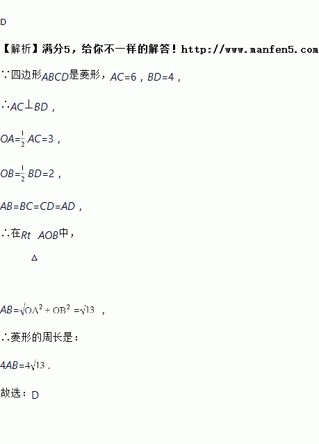 如图,菱形的两条对角线相交于点,若,,则菱形的周长是( )
