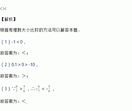 (1)一1_________0 (2)0.1_________—10 (3)一________一