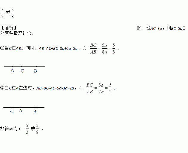 已知点A、B、C在直线l上,若BC=AC,则=_______________.