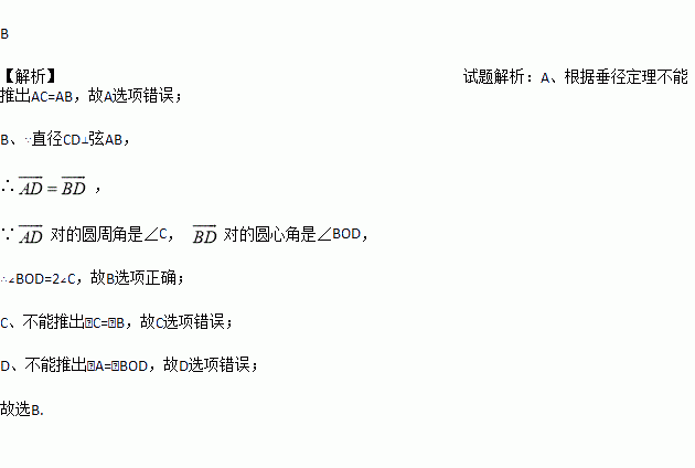 如图,在⊙O中,直径CD⊥弦AB,则下列结论中正确的是( )