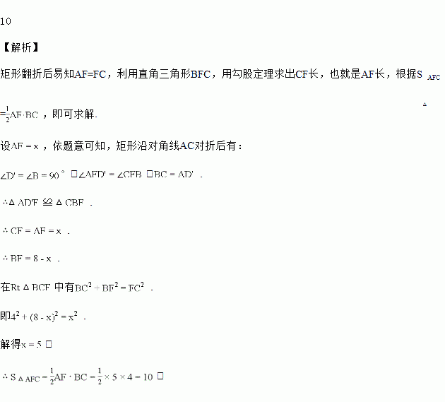 如图,在矩形ABCD中,,,将矩形沿对角线AC折叠,点D落在处,求重叠部分的面积.